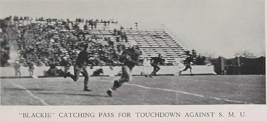 Bernard Taylor catches a TD pass. (1927 TCU yearbook)