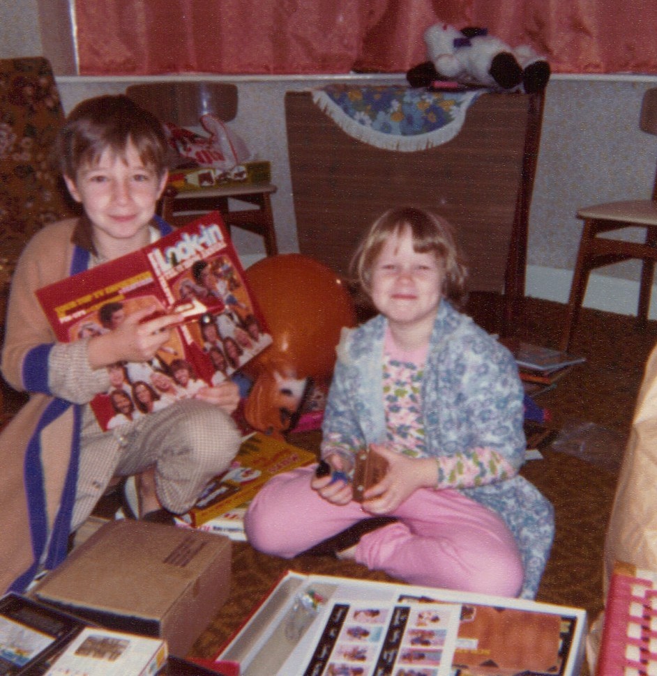 Me & Tracy, Christmas 1977 - look at how chuffed I am, I've got the new Look-In annual AND the Starsky & Hutch Gran Torino!