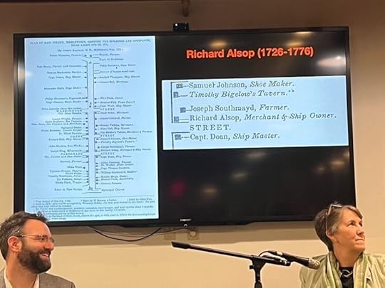 In Middletown, Connecticut, I had a fascinating conversation with Jesse Nasta, a Wesleyan history professor and the director of the Middlesex County Historical Society. My whole family is buried in the Indian Hill Cemetery on the hill above Middletown and before our conversation, Jesse showed slides detailing the long history of the Alsops in the town.