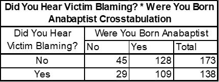 1. Are people born Anabaptist more likely to hear victim blaming?