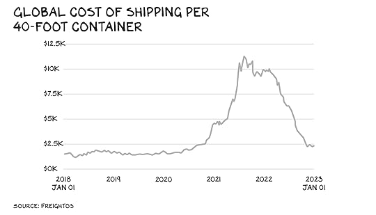 By the fall of 2020, 94% of the Fortune 1000 reported supply chain disruptions, and it wasn’t just demand building. Ships were in the wrong place, some warehouses were bursting, sources of supply were coming back online at different cadences, and managers had no idea how to forecast the rate at which demand would return. Plus, China was a mess. And if the 21st century global supply chain spiderweb has a central node, it’s China. The result: All those dollars (see above) had even fewer goods to chase, so prices went up. And this is about psychology as much as reality — nothing makes people freak out about prices like empty store shelves. Retailers were snapping up any inventory they could find, and what was available for sale was sold dear. At one point, space in shipping containers was going for $277 per square foot. The cost of a house in Dallas. Only, you get to keep the house in Dallas.