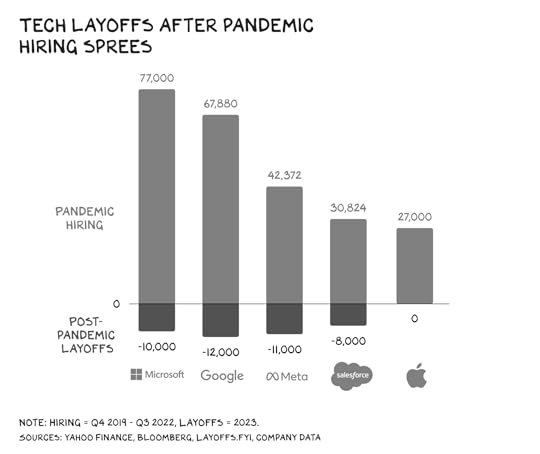 In the information economy, the balance between capital and labor likely swung too far toward labor. Wall Street bankers decided they could do Zoom meetings and proofread deal docs at Starbucks. Big Tech was particularly under the gun, offering not just larger and larger pay packages, but a raft of perks (e.g. valet parking, red-wine-braised short ribs, and free blankets), while loading up on employees — all of which created upward pressure on wage inflation.