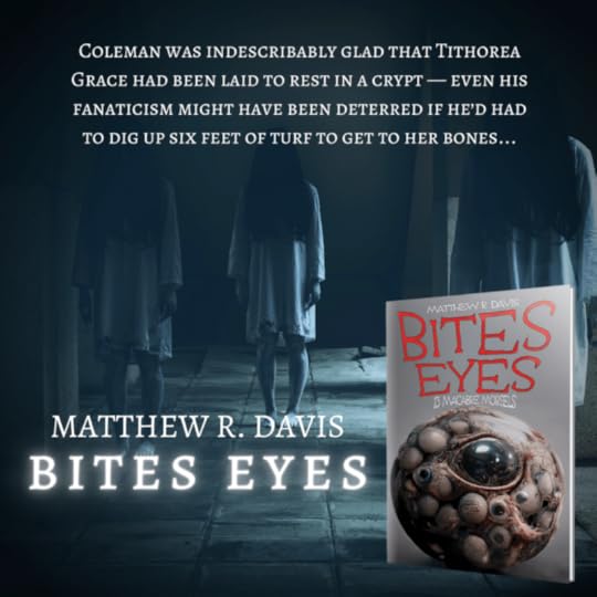 We’re one week out from the release of Matthew R. Davis Bites Eyes over at Brain Jar Press, ergo this week is going to be a little more promo focused than others. There’s a bunch of Brain Jar projects in the hopper at the moment, slowly advancing as I figure out how to balance the various tasks now I’m back in a more-or-less freelance state. Matthew’s book excites me because it’s one of our first releases with an author I didn’t know personally when their work appeared in the submission queue.