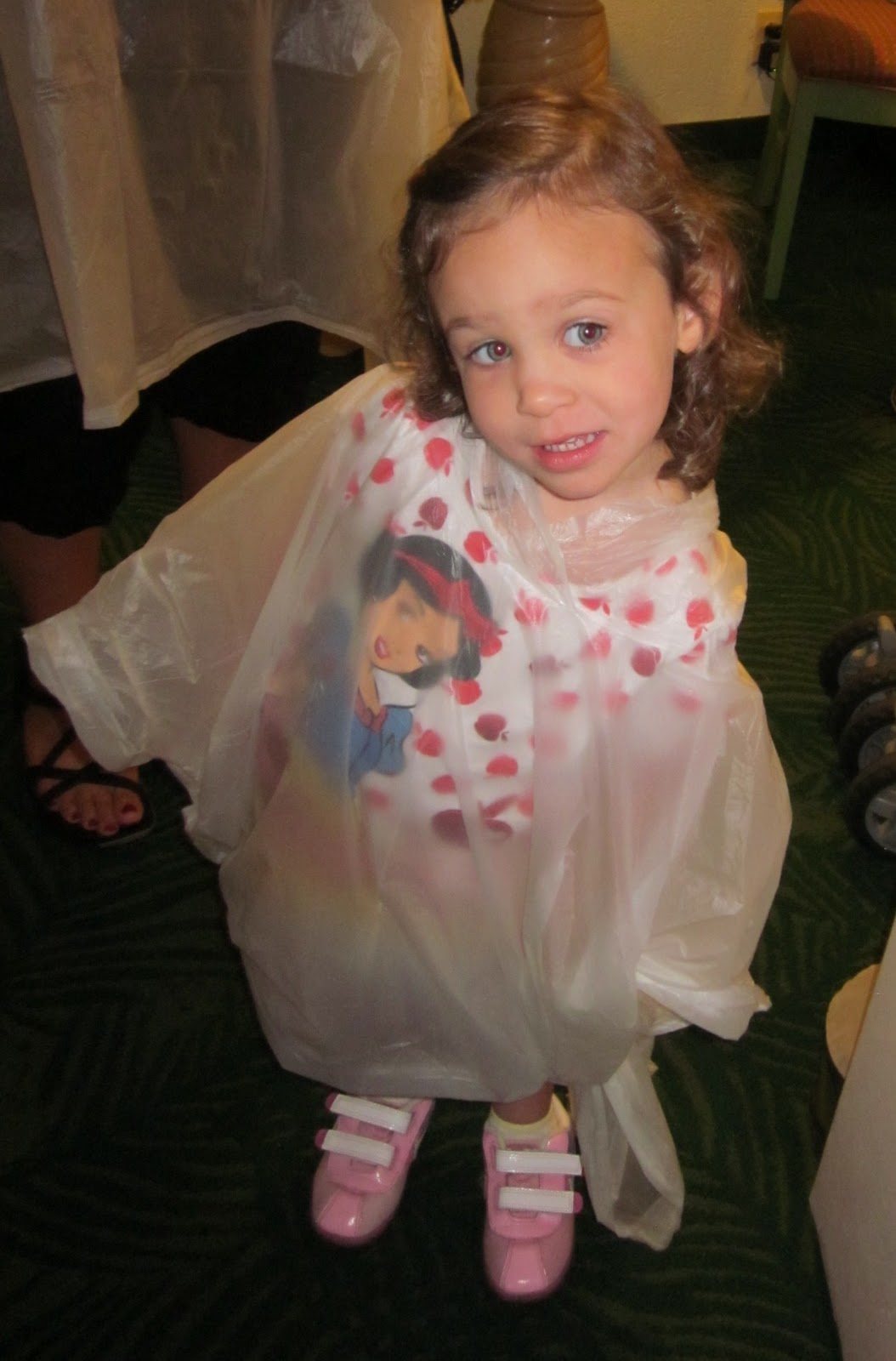 Many will tell you to buy a cheap Wal~Mart version ahead of time, but that's not the way I roll. When I succumb to the poncho, I go full force---overpriced and Mickey emblazoned.