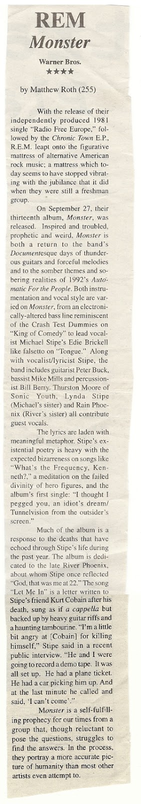 Monster. (And I guess so does Mayim?) And then last week my mother came over, trying to unload all my boxes from high school, and one of them had my review of