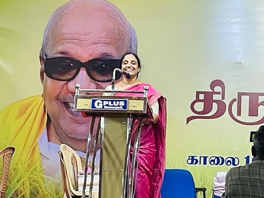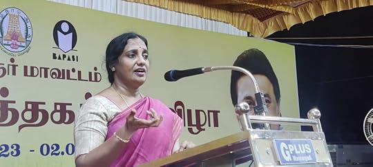 ஆனால் அருண்மொழி முதல்முறையாக மேடையில் தடுமாறுவதைக் காண்கிறேன். அன்றுகாலை திருவாரூர் தேர்விழா. அதற்குச் சென்றுவிட்டு அப்படியே புத்தக விழாவுக்குச் சென்றுவிட்டாள். முதல் ஐந்து நிமிடம் உரை எங்கெங்கோ தொட்டுச் செல்கிறது. ஒரு கோவையான ஒழுக்குக்கு வர பத்து நிமிடங்கள் ஆகின்றது. அதன் பின் வழக்கமான ஜெட் பயணம்.