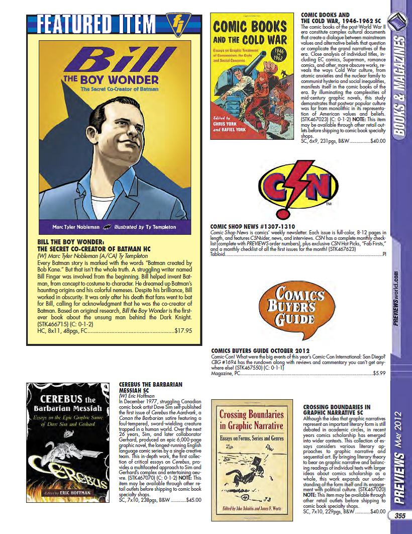 Bill the Boy Wonder: The Secret Co-Creator of Batman is a Featured Item in the May 2012