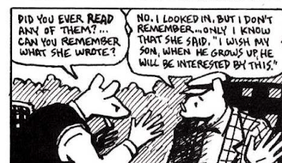 At the end of Maus I, Vladek reveals that he burned all his wife’s memoirs. And immediately after admitting this, he explains that they were written for Art. “I wish my son, when he grows up, he will be interested in this.” A twisting of the knife.