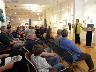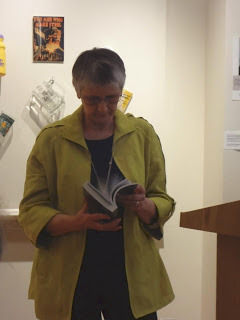 Reading from the novel.Among the attendees were several descendants of George Washington Busch, and three Katilius cousins.  Members of the Pittsburgh St. David's (Welsh) Society were in attendance, including President Ian Samways and Munhall H.S. alum Mark Thomas.  At least eight attendees were former students of G. Edward Busch at Munhall H.S.  Trilby's college friend Jay-Louise Weldon and her husband drove in from New Jersey for the event.