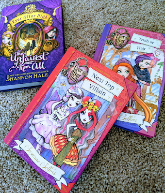 Did you know that there are several fairy tale franchises that portray the legendary princesses as mothers? One of the most famous is Ever After High, Mattel's series of dolls, books, and animated webisodes that ended abruptly a couple of years ago. I consider myself a casual fan of this series, watching or reading stories as I find them without going out of my way. I love the concept of fairy tale characters fighting to write their own story as well as the beautiful character designs that were cleverly engineered to sell as many dolls as possible. A couple of weeks ago, I hit the jackpot at a local library sale that had not one, not two, but three Ever After High books available for my reading pleasure! Until then, I had only skimmed through the first book in the series,