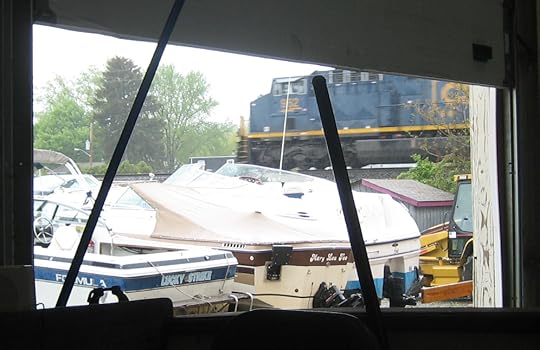 Listen to the rain drum on the shed roof as you consider the work that lies ahead and contemplate how someday, eventually, all this will actually once again resemble a boat. Savor the flavors of the fine cuisine while you dream of being afloat and traveling lazily to far off destinations, like New York Harbor and Sandy Hook. As a special touch, every half-hour or so, feel the soothing vibrations and hear tools rattle as the ground beneath the boat shakes with each passing freight train.  If you’re lucky, you might even see trains on both the northbound and southbound lines pass simultaneously. Twice the vibration for double the fun!