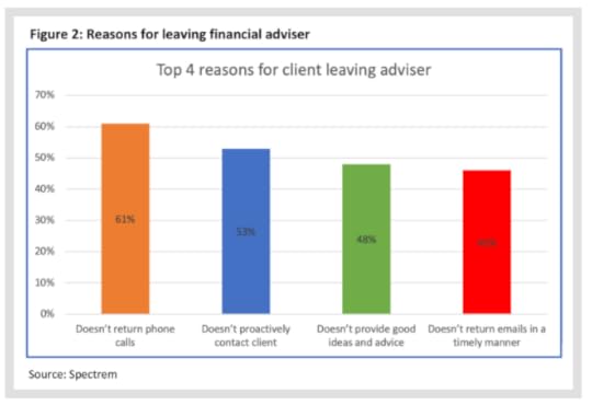 Our best advice for dealing with this gap between economic data and consumer perception is to focus on client engagement through marketing. Considering 3 of the biggest reasons why clients leave a financial advisor are communication related, marketing and other timely communications are a crucial element of client retention in a shifting financial landscape. Take a look at the graph below from a Spectrem Group study to learn more.