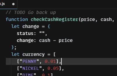 Today's Progress: I fixed the bug from yesterday. I could go back to freeCodeCamp and test this, but if it turns out to be already complete, I might not get the chance to clean it anymore. So I decided to create a separate sandbox to experiment on the best ways to clean the code. I managed to remove nine lines of code by defining multiple variables in one line and replacing a for loop with the map method.