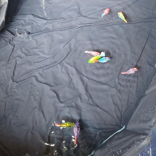 Electronic fishies swimming in a small poolSo, on a whim I bought these fishies and a small pool, wanting to see if the cats would have fun with them. Well…the pool is a lot bigger than I thought. Didn’t really pay attention to the measurements, I guess.
