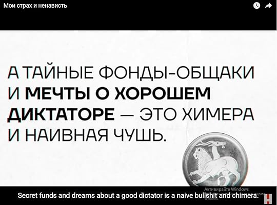 Искате ли да ви преведа какво казва колегата Навални (той беше и е блогър като мен, разбира се, много по-голям и по-важен, аз нямам претенции в тази посока, е, вярно, той сега е в затвора, руснаците, казах, са много по-напреднали от нас, а мен мутро-комунисто-гербоваците само 9 години ме репресираха, уволняваха, гониха, държаха ме безработен, опитаха се да ме уморят чрез унижения, с Божията помощ устоях засега!) или сами можете да се го преведете на български? Прочее, хубаво е, че отдолу има субтитри на английски, ако не знаете руски, то поне английски, убеден съм, знаете - слава Богу че младите сега знаят английски, а не руски (като моето поколение!).