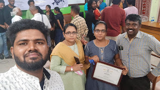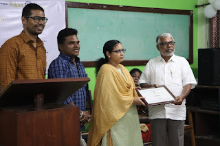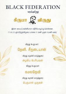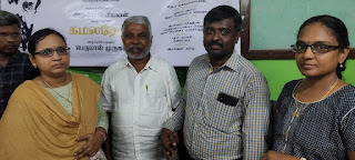 [எழுத்தாளர் பெருமாள் முருகன் விருதை அளிக்கிறார். என் அருகில் விருதிற்கான அனைத்தையும் முன்னெடுத்த இயக்குனர் தமிழ் மற்றும் பாடலாசிரியர் கார்த்திக் நேத்தா]