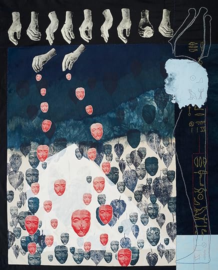 Zohra Opoku, “To me belongs mankind, given wholly to me . . .,” 2021. Indigo-dyed linen, monotype print, screenprint, threadAll works courtesy the artist and Mariane Ibrahim, Chicago