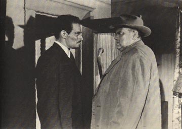 While the bomb was planted on Mexican soil (a fictitious town called Los Robles which was patterned after Tijuana), the explosion occurred in the US, and is to be investigated by US officials. Vargas, a top Mexico City narcotics investigator, hangs around to offer his assistance as the police wait for Hank Quinlan to arrive. Orson Welles was 42 when Touch of Evil was filmed, but with the makeup to make his face appear swollen and bloated, the padding under his ever present overcoat, the thick cane he relies on and the camera angles to make his heft appear far heavier, Welles' Quinlan is massive. A bloated monstrosity of a man who looks like he's in his late 60s (another hint of his age is his wife had been murdered -- strangled to death -- thirty years earlier, the killer being the only criminal to escape Quinlan's justice).