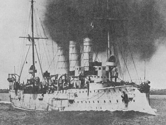 Germany’s main overseas naval force was the East Asia Squadron, based in Tsingtao. Commanded in 1914 by Vice Admiral Maximilian, Reichsgraf von Spee, its main strength lay in two modern armoured Cruisers, the Scharnhorst and Gneisenau, and four modern light cruisers, Dresden, Emden, Leipzig and Nürnberg. There were a number of gunboats and a single destroyer, mainly for policing-type actions along the coast of China. Impressive as this force might seem, it was puny by comparison with the naval forces of Britain’s ally, Japan,  which not only deployed large numbers of superb ships and manned them with seasoned professionals, but which nine years before had achieved the greatest naval victory in history up to that time. There were in addition British ships in the area, and the Royal Australian Navy’s flagship, the battlecruiser HMAS Australia, was alone superior to von Spee’s entire squadron.
