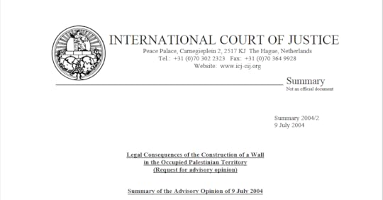 In 2004 the International Court of Justice, in an advisory Opinion to the UN General Assembly, ruled illegal Israel’s construction of its great Wall, which is a fundamental part of the Israeli Apartheid system. The court considered Israel’s argument of self-defence and ruled that this did not justify the numerous breaches of international law represented by the Wall: