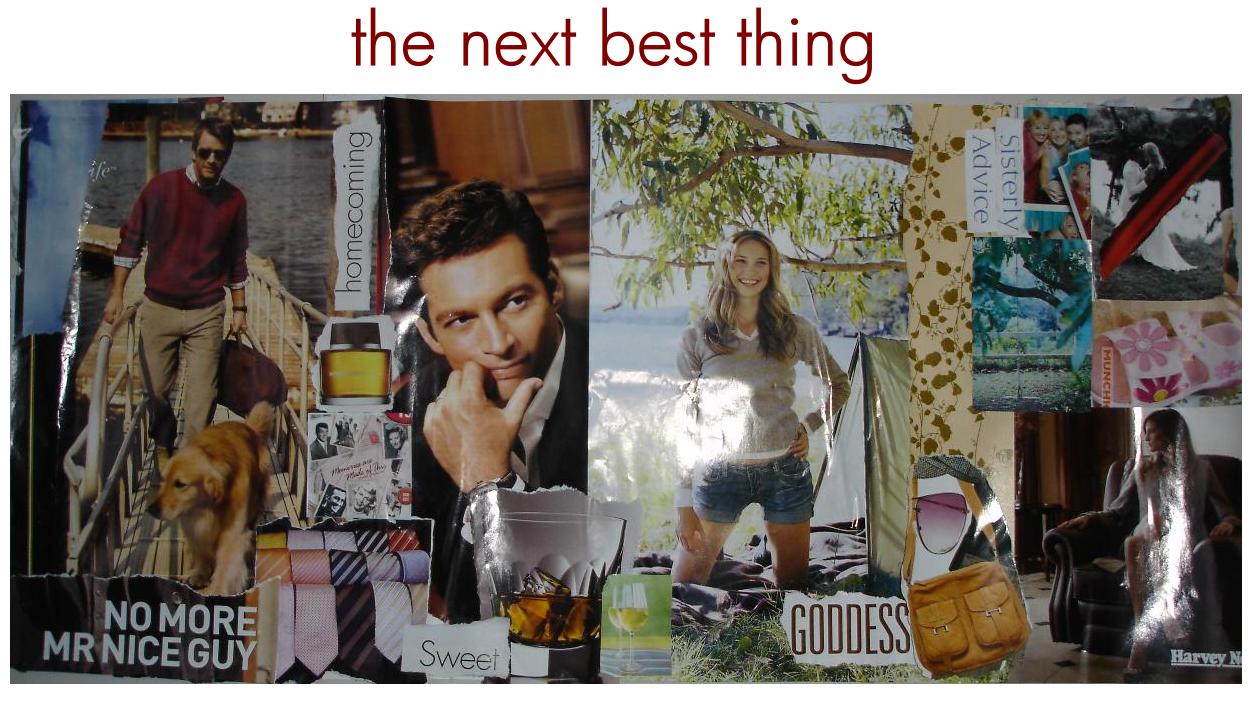 The hero & heroine inspiration images changed in the writing - Danny needed to be darker, Brooke more of a mum - but the hero's air of luxury and solitude remained spot on, as did the heroine's fresh, natural, girl-next-door feel. The "No More Mr Nice-Guy" quote which meant nothing in particular when I cut it out, ended up being the hero's entire character arc. For me the collage was about a feeling, a tone, a dichotomy that flowed into the book.I don't collage all that often anymore, as for me it can box me in as much as open up new ideas, but this time it helped for sure.
