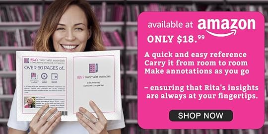 Rita’s Minimalist EssentialsJumpstart your decluttering journey with our 60-page all-in-one decluttering workbook and companion. Packed with checklists, calendars, progress trackers, and more, it’s your essential tool from start to finish.
