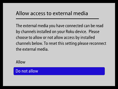 LASTLY, A QUESTION I HAVE: I now own and watch TV on Roku TV sets in two different rooms. Each has a USB port to which one can connect a flash drive or external hard drive…and one can play or view video files and images (in some formats) on one's TV using an app called Roku Media Player. This is an enormous convenience but when I try to use Roku Media Player, I get a message that says this…