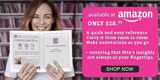 I now have more time, money, and freedom to do more of what I want to do and I find true joy in using that time and my God-given talents to help others. I now have more time to write, research, speak, produce videos, and most recently launch a new 60-page workbook and companion, Rita’s Minimalist Essentials to help you get started and stay motivated on your decluttering journey so you can cross the finish line.