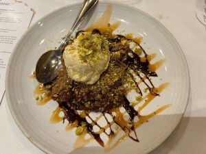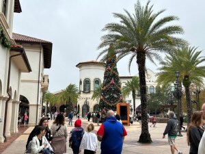 Most recently, we celebrated our 47th anniversary at Disney Springs. We began with lunch at Wolfgang Puck and finished with dessert at the Cookie Bar in Summer House on the Lake. It’s always fun to walk around among the shops and restaurants in this lively venue. Dining reservations are a must for the full-service eateries.