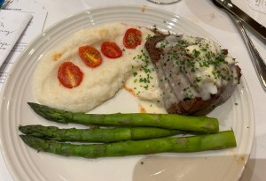 Our anniversary night found us at Christner’s, an elegant steak place where we dressed to impress. I had to get the filet mignon accompanied by asparagus, cheesy potatoes, and sauteed mushrooms. They gave us a slice of chocolate cake for a complimentary dessert. It was lovely and we look forward to eating the leftovers for several days.