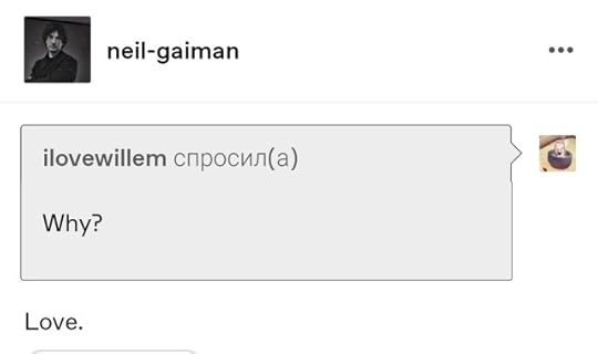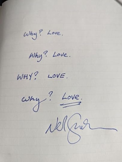 @neil-gaiman I definitely need “Why? Love.” in your handwriting (and your signature) as I want it tattooed on me. It’s the answer to everything, when 42 won’t quite cut it.