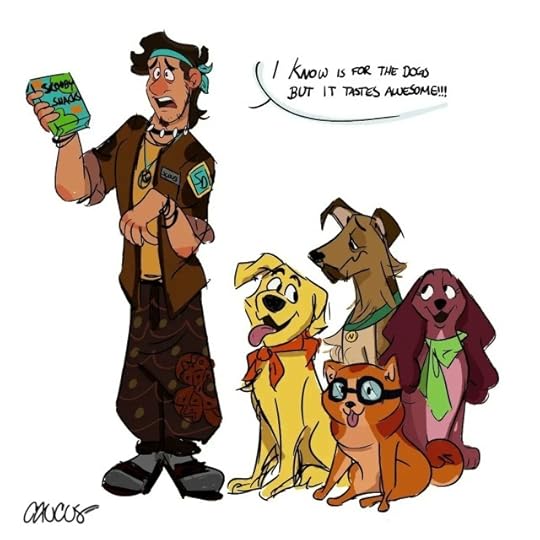 Honestly I love this because it implies that Scooby is just a guy with a bunch of dogs that drag him into trouble then somehow solve mysteries and crimes and he’s just there like. My dog has a magnifying glass with her. Why. Why does she have that. And Shaggy (which is such a good name for a dog) is the only one close to acting like a regular do...