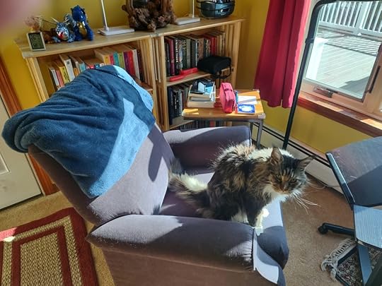 Here’s a picture of the reading-soon-to-be writing nook. Coon cat provided for scale: