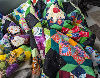Because all these creative endeavors are gifts of the spirit, not wholly of my own making even if my hands, brain, and heart do all the heavy lifting. These jewels and gems are priceless but better if they grace the lives of others. These treasures are precious to me AT THIS MOMENT IN TIME, but then a new shiny comes along and how many quilts or books can one person reasonably possess at any given moment? Better to pass them along, as I did with A Love Story, and as I've done with 90% of my quilts, and as I just might do with Cornflower if the opportunity arises.