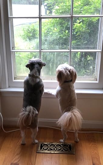 My brother has two dogs: Ginger, 12, a Shih-tzu, and Maple, 7, a Pomeranian/Bichon mix. (I call her a Pom bitch.) I only live a couple of miles away, so if my brother, a clinical psychologist with a lively therapy practice, is having a busy day, I’m the backup dog-minder. It’s not a big chore for me to dash over to take the girls (as we call them) out for their midday or late-afternoon airing. In fact, I enjoy doing it. Makes a nice break in what is often a very quiet day, especially if I’m immersed in writing a draft. I often stick around after I’ve rewarded the girls with their treats and we keep each other company. I read a book or listen to a podcast with one or both of them on my lap or leaning against me.