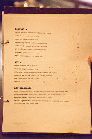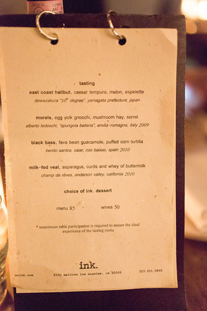 The cocktail menu. Like most modern LA joints Ink employs some serious mixology. Being a wine nut and pseudo-pro sommelier (I recently got my Italian specialization, working on Burgundy) I’m not really that knowledgeable about cocktails.