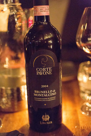 I brought this Brunello to from my cellar to start. “The 2004 Brunello di Montalcino is a fresh, vibrant offering bursting with dark cherries, violets, underbrush, minerals and sweet toasted oak on a medium-bodied frame. The wine reveals terrific balance in an energetic, focused style, with firm yet ripe tannins. The finish is long, clean and refreshing. This is a gorgeous effort from Loacker. Anticipated maturity: 2011-2019.”