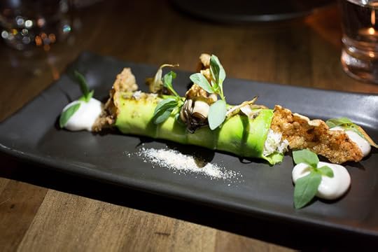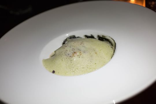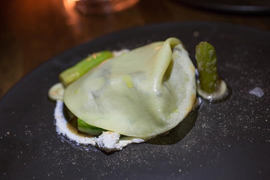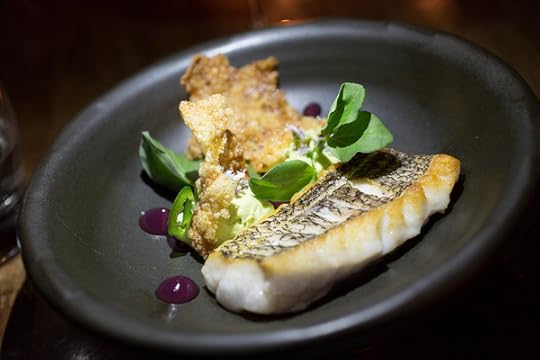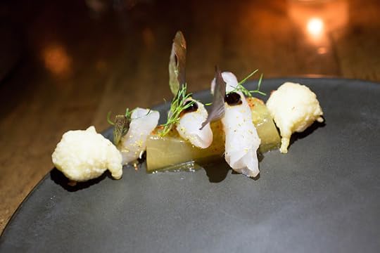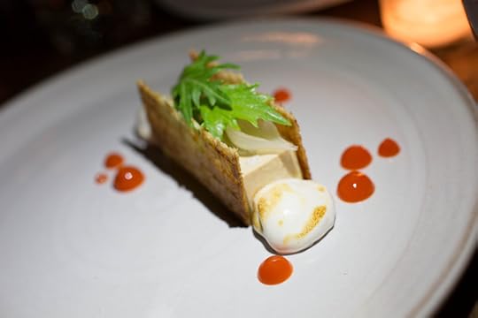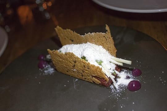 “black bass, fava bean guacamole, puffed corn tortilla.” Mostly, this was just fish. Good fish, but not as exciting as some of the other dishes.