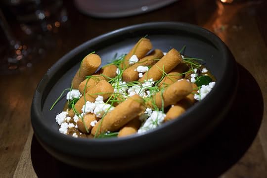 “poutine, chickpea fries, yogurt curds, lamb neck gravy.” This was amazing, but ridiculously rich. Again with the circus peanut texture, but I was digging it.