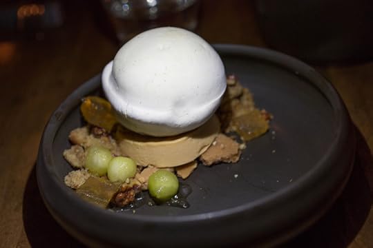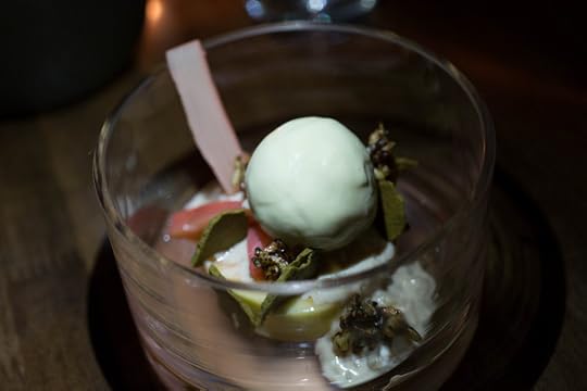 “apple, caramel, burnt wood ice cream.” This one was amazing. Unexpected interplay of textures and flavors.