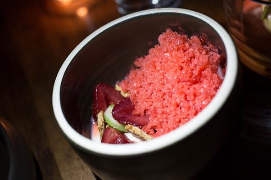 “greek yogurt, strawberry, japanese peach, coconut.” This also was great. Like strawberries and cream with a wonderful granite. Or maybe like a perfected Hawaiian shave ice?