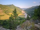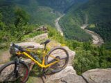 Продължихме заедно някаква част, но на моменти се случваше и да ме изчаква. За мен карането вече беше мъчение, болката в рамото ме изцеждаше, най-добре че чувствах на гладко изкачване без да си мърдам ръцете от кормилото, а всяко спиране, слизане, качване и тръгване бяха като удари, наказание за тялото. Мазах се и с някакъв гел или крем за травми, но без ефект. Имаше и пресичане на мокри скали, вероятно от малък поток. Там бутах, подхлъзнах се и си ударих коляното, което допълнително влоши положението ми. Бях голям стопер за карането на Пламен и повечето време карах сама като се ориентирах по маркировката и линията на часовника, закачен на кормилото. Времето минаваше час след час и не знаех колко още път ми остава. Разминаваха ме хора от групата и се успокоявах като видя някого, значи се движа в правилната посока. Имах една последна почивка с хубава гледка и няколко души, които тръгнаха преди мен и знаех, че финалът е близо, но стигнах място, където се мотах и обикалях дълго докато реша какво да правя. Виках и получавах отговор от долу, бях толкова близо, а се загубих, часовникът показваше едно, а мястото изглеждаше без изход – полянка и паднали дървета, непроходими храсти. Накъде? Реших сама ра разгледам и просто да мина където може с колелото. Озовах се на някаква пътечка и стигнах моста, на който ме чакаше Пламен, завършил прехода за деня няколко часа преди мен. Посрещна ме и рухнах емоционално. Добрах се почти до палатковия лагер с колело, защото не ми разреши да го карам до там, а аз настоявах да карам и оставащите 2 дни! Средно по около 30-40 км дневно, а в този ден по-голямата част я изминах с тази ужасна болка. Там ме прегледаха и се установи, че рамото ми не е извадено, но състоянието ми не позволяваше да продължа, а ръката ми ставаше все по-безполезна и неспособна да се вдигне до кормилото, а какво остава за каране. Това е втората ми сериозна травма от планинско колоездене. Бях много разочарована, ядосана, тъжна, че трябва да спра. След изкъпване в реката и разни мазила на болното място легнах и почти не заспах от болка, въпреки епичния ми велопреход, който ми отне 12 часа. (03.07.2023)