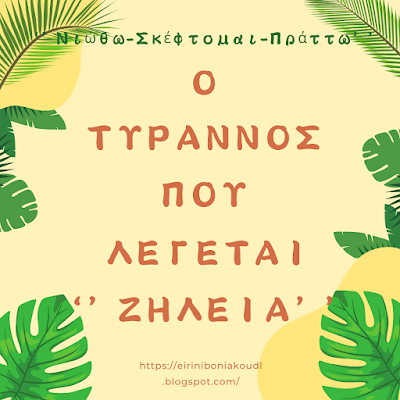 Το θÏμα ÏÎ·Ï Î¶Î®Î»ÎµÎ¹Î±Ï ÏμÏÏ, δεν είναι μÏνο Î±Ï ÏÏÏ ÏÎ¿Ï Ïην αιÏθάνεÏαι, αλλά και ο άνθÏÏÏÎ¿Ï ÏÎ¿Ï ÎÏει βάλει ο ÏαθÏν ''ÏÏο μάÏι''. ÎÏ ÏÏÏ Î¿ άνθÏÏÏÎ¿Ï ÏολλÎÏ ÏοÏÎÏ ÎµÎ½ αγνοία ÏÎ¿Ï , ÏÏ Î½Î±Î½Î±ÏÏÏÎÏεÏαι με Ïην ÏοξικÏÏηÏα Î±Ï ÏÎ¿Ï ÏÎ¿Ï Ïον ζηλεÏει. Î ÏακÏικά, εκÏÏÏ Î±ÏÏ Ïα διάÏοÏα ÎºÎµÎºÎ±Î»Ï Î¼Î¼Îνα δηληÏηÏιÏδη ÏÏÏλια ÏÎ¿Ï Î´ÎÏεÏαι καÏά καιÏοÏÏ, μÏοÏεί να ÏÏάÏει να ÏληγÏθεί ανεÏανÏÏθÏÏα αÏÏ Ïον ζηλιάÏη ÏÏ Î½Î¬Î½Î¸ÏÏÏÏ ÏÎ¿Ï . ÎÏ ÏÏÏ ÏÏÏ, κάÏοιοι αÏÏ Î±Ï ÏοÏÏ ÏÎ¿Ï Î¶Î·Î»ÎµÏÎ¿Ï Î½ δεν αÏκοÏνÏαι μÏνο ÏÏα λÏγια, αλλά ÏÏοÏÏÏοÏν και Ïε ÏÏάξειÏ. Îα ÏÏÏÎÏÎ¿Ï Î½ Î¬Î»Î»Î¿Ï Ï ÎµÎ½Î±Î½Ïίον Î±Ï ÏÎ¿Ï ÏÎ¿Ï Î¶Î·Î»ÎµÏÎ¿Ï Î½, να ÏÎ¿Ï Î½ Îνα ÏÏÏÏ ÏÎμαÏα, να κλÎÏÎ¿Ï Î½...