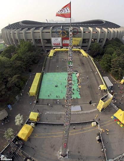 This is the world’s new tallest Lego tower unveiled in honor of the toy’s 80th birthday in Seoul. It was constructed over 5 days by 4,000 kids and is made of half a million blocks reaching 105 feet into the sky.