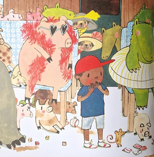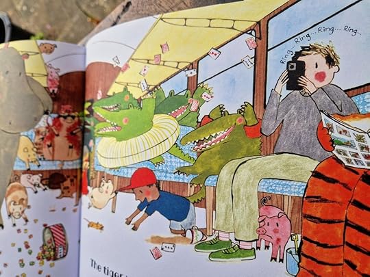 – Mariesa Dulak, Books for TopicsDulak confronts the problem with a deft touch. Tiger on the Train is not heavy-handed; rather, as Charlotte Eyre of The Bookseller notes, Dulak instills the story ‘with a sense of gleeful, adventurous chaos’, aided and abetted by Cobb’s illustrations, which add layers of humourous details to discuss. As for the tiger who keeps a comic in his top hat, there’s plenty of discussion and imaginative games to be had there!