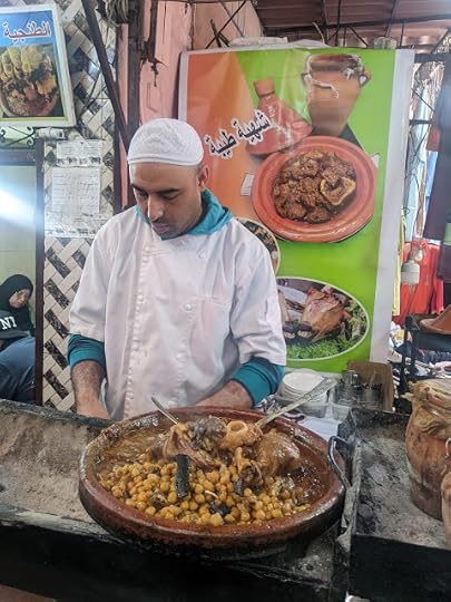 কিন্তু একটাই মুশকিল, এদের রান্নাবান্না ব্যাপারটা ইন্য লেভেলের! যেদিকে দেখো মণ্ডামেঠাই চাঁপ বিরয়ানি কষা মাংস কেক মালাই ইত্যাদি। খাবার কথা আর কী বলব? সকাল সকাল মিন্ট টি আর চিজ আর ডিমের মাখো মাখো অমলেট খেয়েছি অলিভ দিয়ে, তারপর থেকেই চলছে। খেজুর আভাকাডো শেক খেয়েছিলাম কাল, তোহফা জিনিস, তারপর খাস আফ্রিকান ঝাল টমেটো মিষ্টি লংকার চাটনি সহযোগে স্কিউয়ার গ্রিল আর কুশকাউস, এদিকে আজ ল্যাম্ব তাঞ্জিয়া খেতে গিয়ে শুনলাম, একে নাকি ব্যাচেলার্স ডিশ বলে। মানে, ব্যাচেলার হলেই না আজ মাংস ম্যারিনেট করে হালকা আঁচে মাটির কলসিতে দিয়ে ভুলে যাবে আর কাল বিকেলে নামাবে, নেহারির বাবা! খেতে মচৎকার নো ডাউট, শুধু মিনিট দশেক সাবান দিয়ে হাত না ধুলে পরে মনে হতে পারে গুরুদ্বারার গাওয়া ঘিয়ে তৈরি কড়াপ্রসাদ খেয়েছি। যাকগে, আরো হাজারখানেক খাবার বাকি! হারিরা আর অরেঞ্জ কেক থেকে শুরু করে ভেড়ার মাথা আর তেজিনে থেকে কুশকাউস.. এসব বড্ড ভালো জিনিস, এসবকে কেউ কিচ্ছু বললে ভালো হবে না।