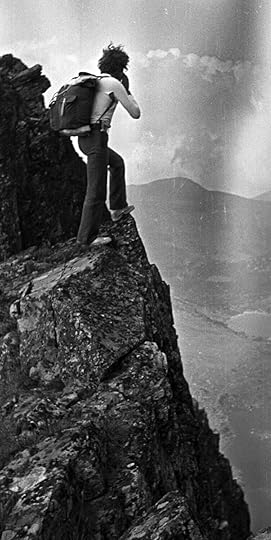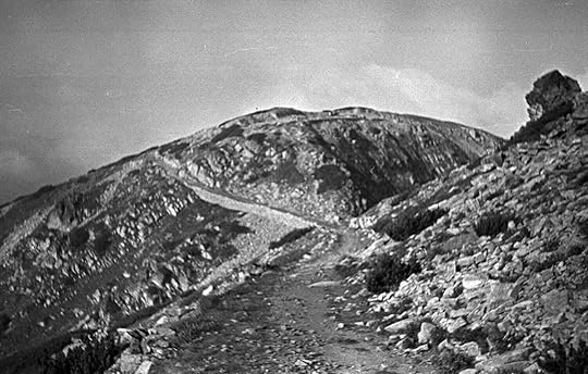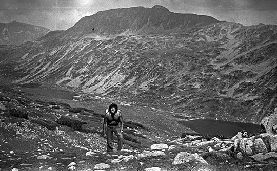 Вече съм на седловината над Рибните езераГошо беше по-як от мен в краката. Клякаше и ставаше с щанга от 140 кг, докато аз успявах само със 100 кг. Пръв изкачи скалата с отвесен склон около 200 м и седна отгоре за да се любува на природата. Когато изкачих върха, той беше слязъл в следващата седловина. Изправих се на ръба на скалата и виках с всички сила към Рибните езера. Като се навиках до насита тръгнах да слизам по ръба, но както бях с кецове се подхлъзнах от песъчинките и полетях към пропастта. Успях да се хвана с дясната ръка за ръба на скалата и увиснах с главата надолу. Лявата ми ръка висеше безпомощна, а краката ми бяха горе на скалата. Виждах отсрещните върхове обърнати