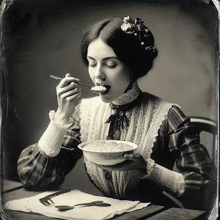 The two returned to the table, with Raj settling next to me with his plate, and Ernest neatly placing my portion before me, along with what appeared to be a blunt camping fork and an overlarge pewter spoon. That mattered not a whit, for of more import was the thick portion of well-syruped and lumpy oats, along with a well-seasoned mound of plainly scrambled eggs. Though my instinct was to devour it in a manner more vulpine than ladylike, I paused, closed my eyes, and whispered a word of grace over the portion with which I had been blessed.