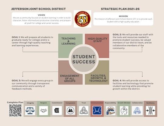 Collaborative Learning: Using data analysis and examination in a group setting to formulate questions and establish priorities.Facilitated Collaborative Planning: Facilitating a group's vision, mission, values, and top priorities.Stakeholder Test Drive and Implementation: Sending the plan's findings or draft to relevant stakeholder groups for comments or adjustments.Below is an example of the finished product from a post project where I helped a district with this process.