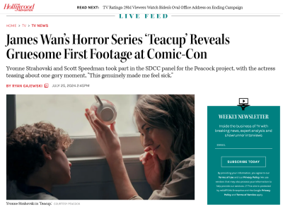 Executive producers James Wan (Saw, Aquaman) and Ian McCulloch (Yellowstone) and stars Yvonne Strahovski, Scott Speedman and Chaske Spencer took part in the event for the series, and they all remained fairly tight-lipped to avoid giving away too much. Teacup is set to launch with its first two half-hour episodes on Oct. 10, followed by two episodes being released weekly through Halloween.